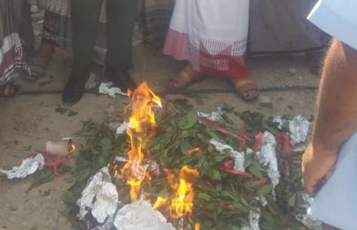 أحرقت الأجهزة الأمنية في حضرموت، اليوم السبت، 26 بندل قات، ضبطتها نقطة محور الضبة، قبل تهريبها للمحافظة.