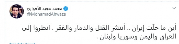 وكتب في تغريدة عبر "تويتر" رصدها "المشهد العربي": "أين ما حلّت إيران .. انتشر القتل والدمار والفقر. انظروا إلى العراق واليمن وسوريا ولبنان".