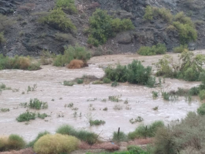ولا تزال الأمطار تهطل على رؤوس الجبال وعلو الوديان، ومن المتوقع أن ترتفع السيول وتتدفق بكثرة وسرعة كبيرة.