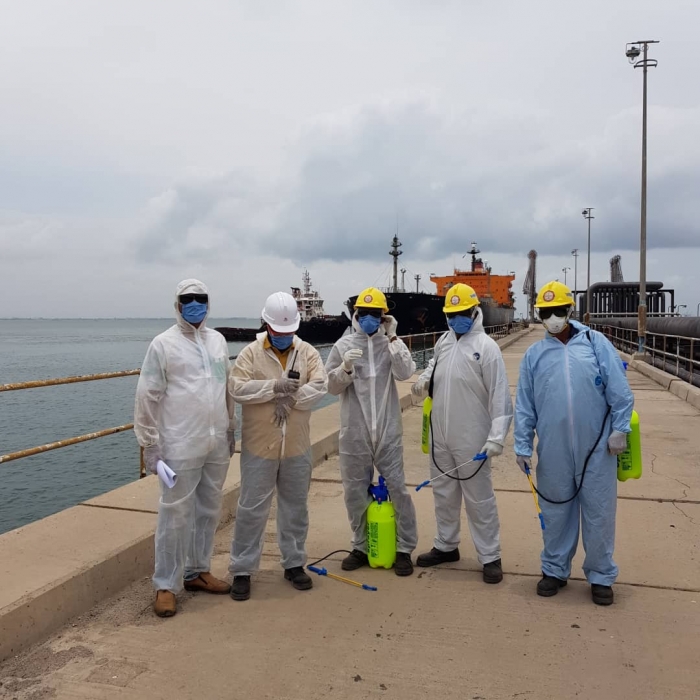 وبدأت فرق العامين تفريغ شحنة السفينة من الديزل، تحت إشراف أطقم السلامة المهنية.