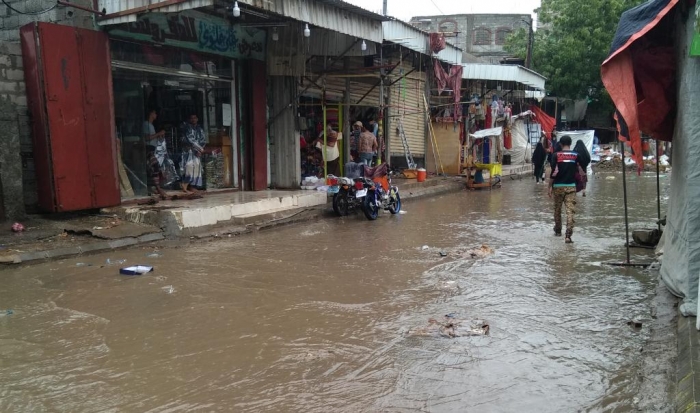 اختلطت مياه الأمطار التي ضربت مدينة الحوطة في محافظة لحج، اليوم الثلاثاء، بالصرف الصحي.