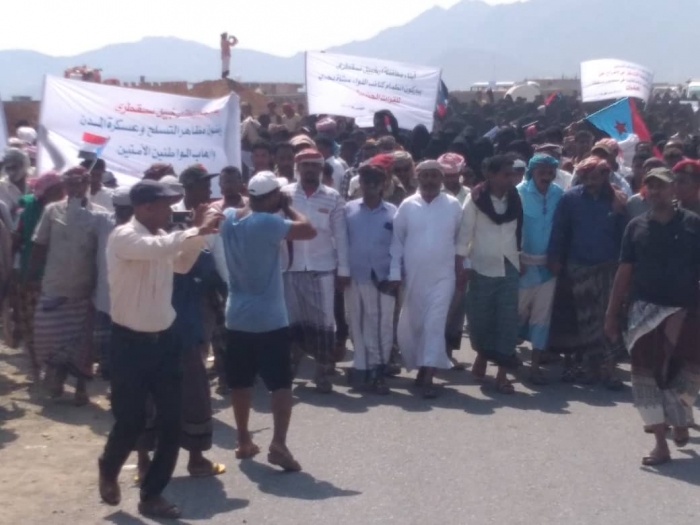 وطالبوا بإنهاء المظاهر المسلحة لمليشيات الإخوان الإرهابية، وإيقاف ملاحقة الناشطين والإعلاميين وقيادات المجلس الانتقالي الجنوبي في سقطرى.