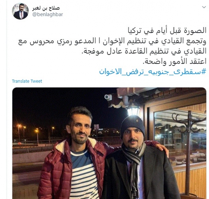 ألمح الإعلامي صلاح بن لغبر، اليوم، إلى وجود علاقة بين المحافظ الإخواني لسقطرى رمزي محروس وأحد عناصر تنظيم القاعدة الإرهابي في اليمن.