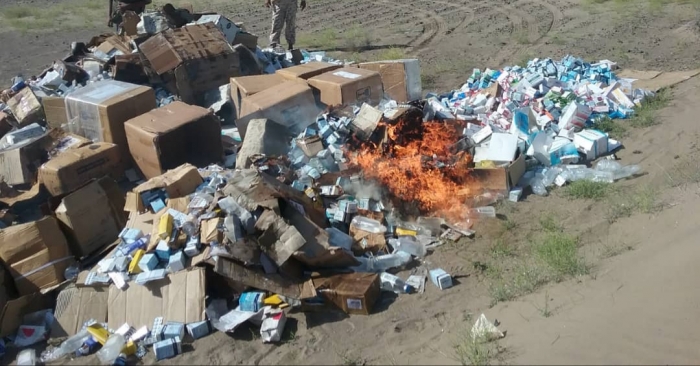 وتمت عملة إتلاف الأدوية المهربة والتي دخلت بطريقة غير شرعية إلى البلاد، بإشراف لجنة متخصصة.