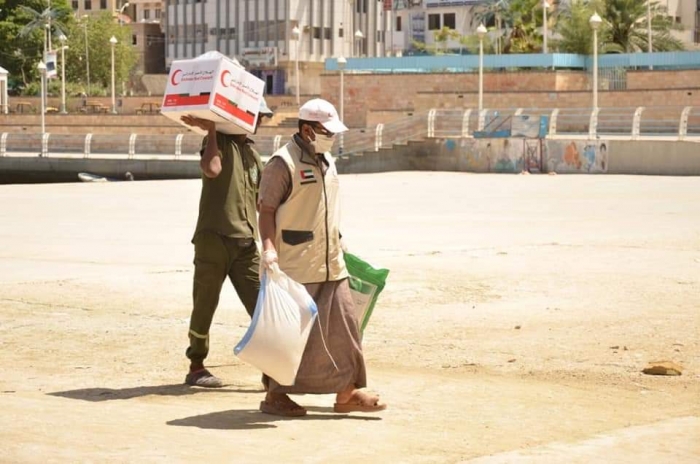 الإمارات تدعم عمال نظافة ساحل حضرموت بسلال غذاء