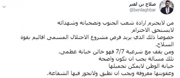 بن لغبر: من يقف مع شرعية 7/7 فهو خائن