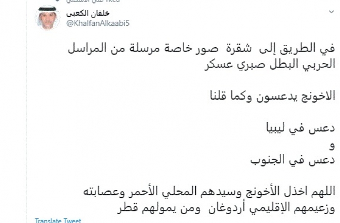 وأضاف: "اللهم اخذل الإخونج وسيدهم المحلي الأحمر وعصابته وزعيمهم الإقليمي أردوغان ومن يمولهم قطر".