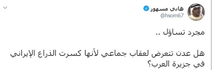 وكتب عبر تغريدة له على "تويتر" رصدها " المشهد العربي": "مجرد تساؤل، هل عدن تتعرض لعقاب جماعي لأنها كسرت الذراع الإيراني في جزيرة العرب؟".