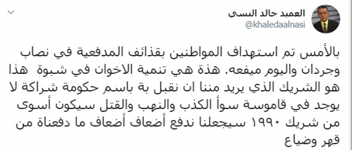 قال الكاتب والمحلل العسكري، العميد خالد النسي، إنه لا يوجد في قاموس إخوان اليمن سوى الكذب والنهب والقتل.