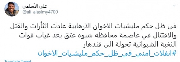 الأسلمي يُعلق على الانفلات الأمني بشبوة في ظل حكم مليشيا الإخوان