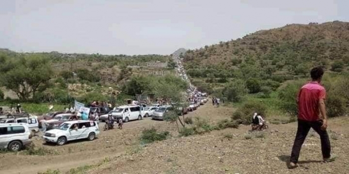 وصلت إلى منطقة العين مقر اللواء 35 مدرع بمديرية المواسط في محافظة تعز، اليوم السبت، مسيرة حاشدة شارك فيها أبناء مناطق الحجرية جنوبي المحافظة.