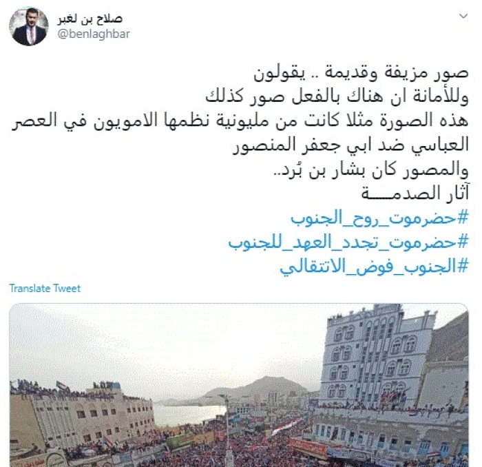بن لغبر يسخر من أكاذيب الإخوان عن مليونية حضرموت