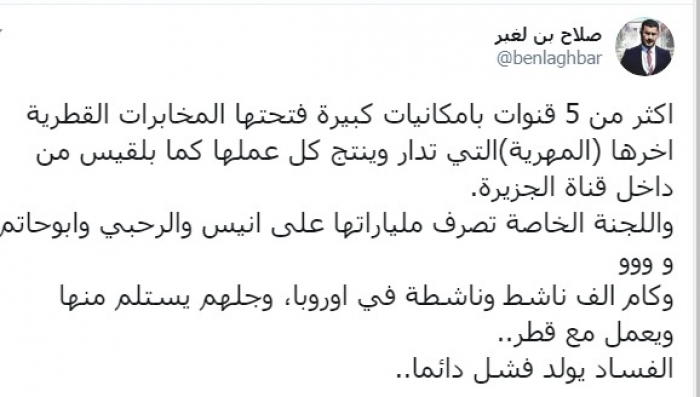 بن لغبر: قطر تصرف المليارات على إعلام الإخوان