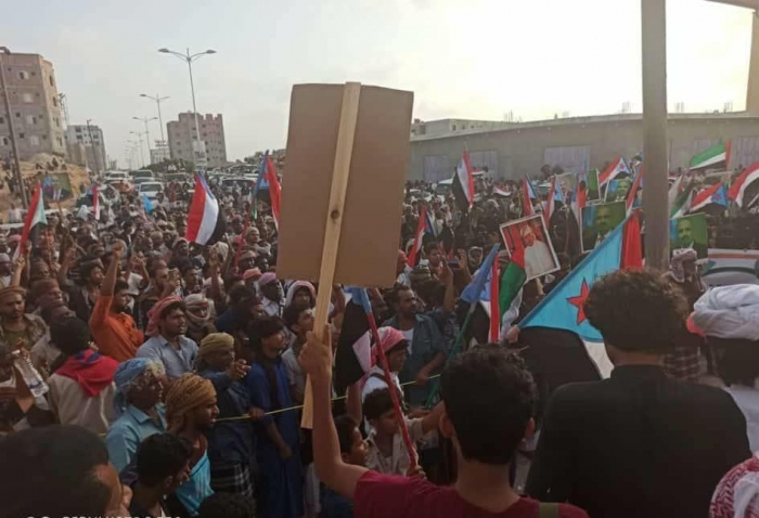 ورفع المتظاهرون الذين زحفوا في مواكب جماهيرية حاشدة، أعلام الجنوب، ورددوا هتافات داعمة للمجلس الانتقالي الجنوبي.