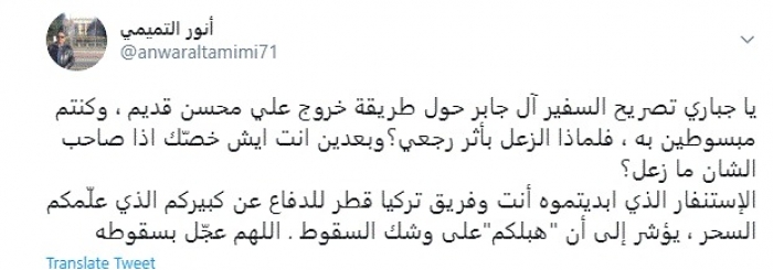 التميمي لـ جباري: أنت وفريق تركيا وقطر أصبحتم على وشك السقوط