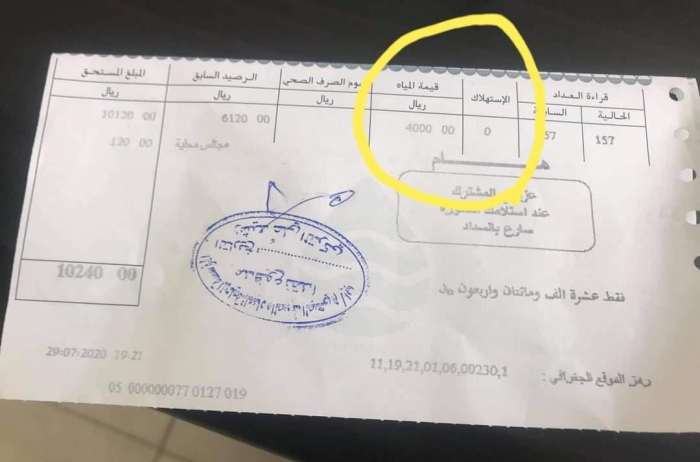 وجاءت تلك الفاتورة العالية، رغم عدم استهلاك الشخص الصادرة له الفاتورة لترًا واحدًا من المياه.
