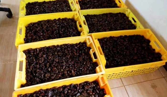 وتلقى المصنع، خمسة أطنان من التمور، للعمل على تنظيفها وتغليفها بشكل متكامل.