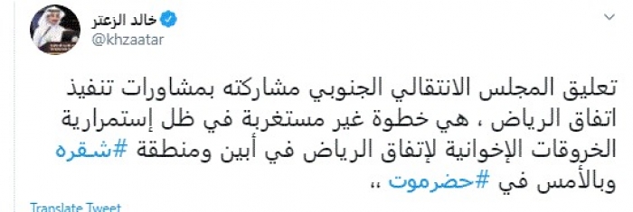 الزعتر: تعليق الانتقالي مشاركته بمشاورات الرياض خطوة غير مستغربة