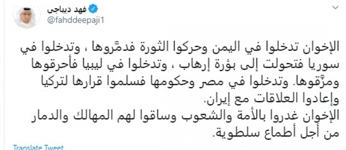 شن المحلل السياسي السعودي فهد ديباجي، اليوم، هجومًا حادًا على تنظيم الإخوان الإرهابي.