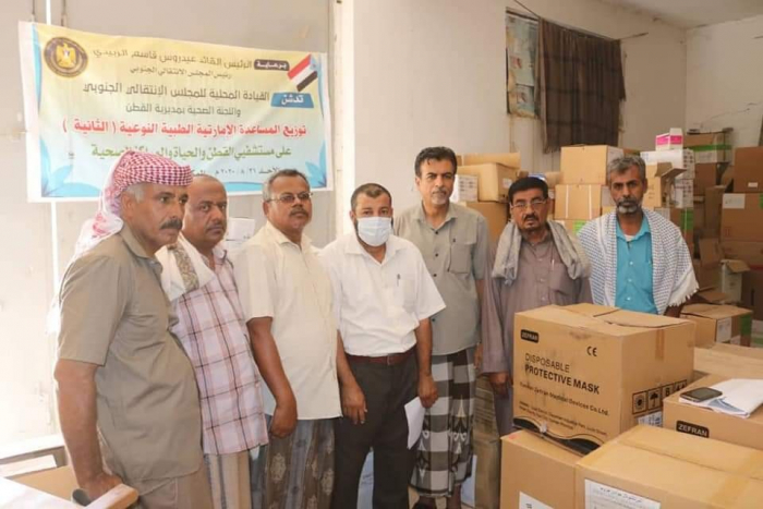 فيما حضر عملية التسليم، محمد محسن الكثيري عضو قيادة بالمحافظة، وعمر القفيل رئيس اللجنة الصحية والطبية بانتقالي القطن، ومحسن بن نهيد نائب رئيس الإدارة السياسية، وحاتم بهيان عضو اللجنة الصحية والطبية.