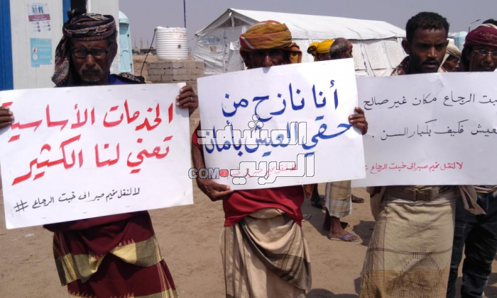 رفض نازحو مخيم صبر في مديرية تبن، بمحافظة لحج، قرار السلطة المحلية نقل مخيمهم إلى المرجاع.