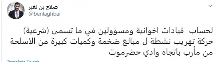 بن لغبر: قيادات إخوانية تهرب أسلحة وأموال من مأرب لوادي حضرموت