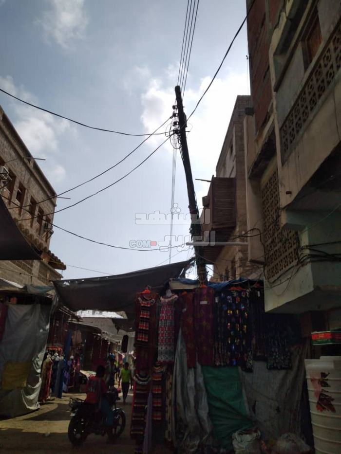 بالصور.. عمود كهرباء يهدد أهالي سوق الذهب بجعار