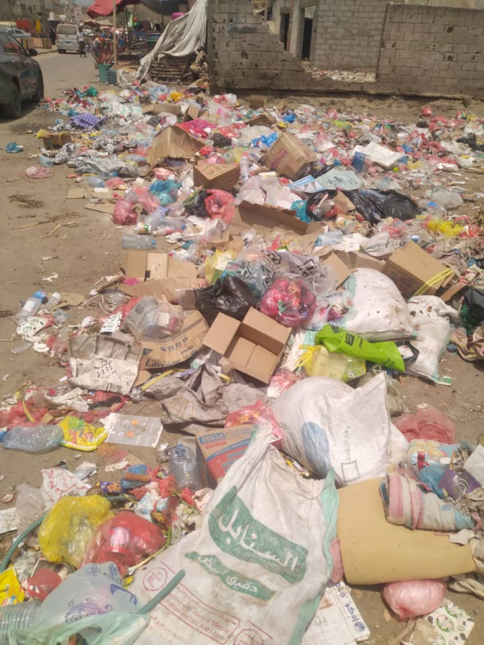 استغرب أهالي مدينة جعار، من وجود مقالب قمامة بجانب مكبات القمامة في الشوارع.