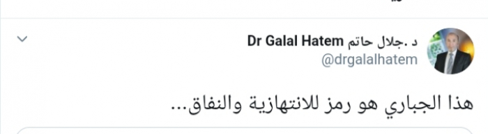 وكتب عبر تغريدة له على "تويتر" رصدها " المشهد العربي": "هذا الجباري هو رمز للانتهازية والنفاق".