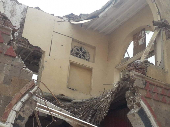 انهيار واجهة المتحف الوطني في تعز (صور)