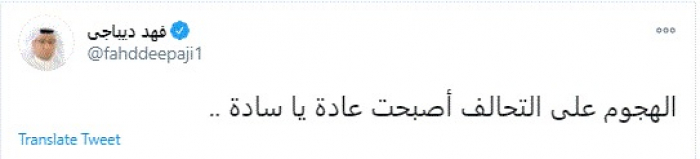 وكتب في تغريدة عبر "تويتر" رصدها "المشهد العربي": "الهجوم على التحالف أصبحت عادة يا سادة".