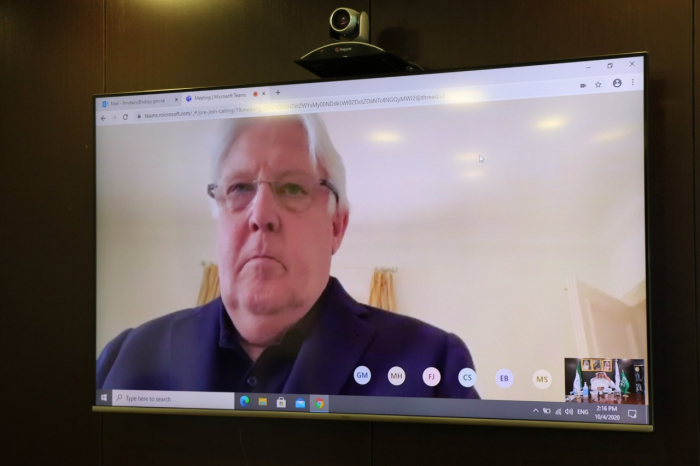 وجدد السفير السعودي، خلال لقاء عبر الاتصال المرئي، دعم بلاده لجهود المبعوث الأممي للتوصل إلى حل سياسي شامل في اليمن.