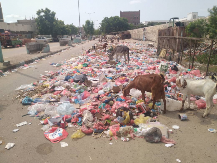 تكدست أكوام القمامة في شوارع مدينة جعار بأبين صباح اليوم السبت، بشكل لافت.