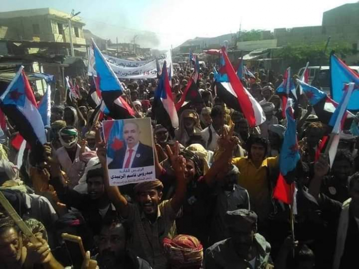 وطاف المشاركون بالمسيرة، الشارع العام في مدينة المحفد رافعين أعلام دولة الجنوب، وصور الرئيس عيدروس الزُبيدي، وشعارات تؤكد على التحرر والاستقلال.