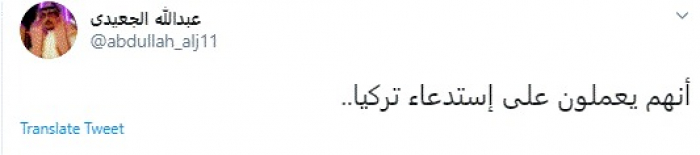وكتب في تغريدة عبر "تويتر" رصدها "المشهد العربي": "إنهم يعملون على استدعاء تركيا".