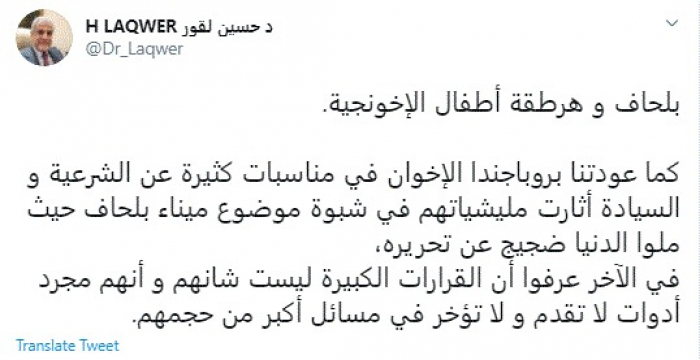 لقور مُهاجمًا إخوان اليمن: مجرد أدوات.. وهذا هو حجمهم الطبيعي