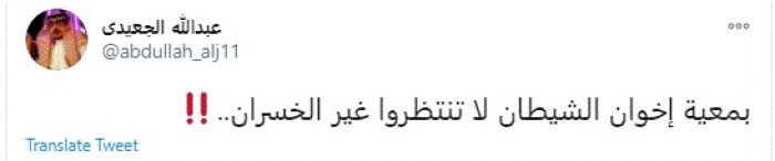 وقال في تغريدة عبر "تويتر" رصدها "المشهد العربي": "بمعية إخوان الشيطان لا تنتظروا غير الخسران".