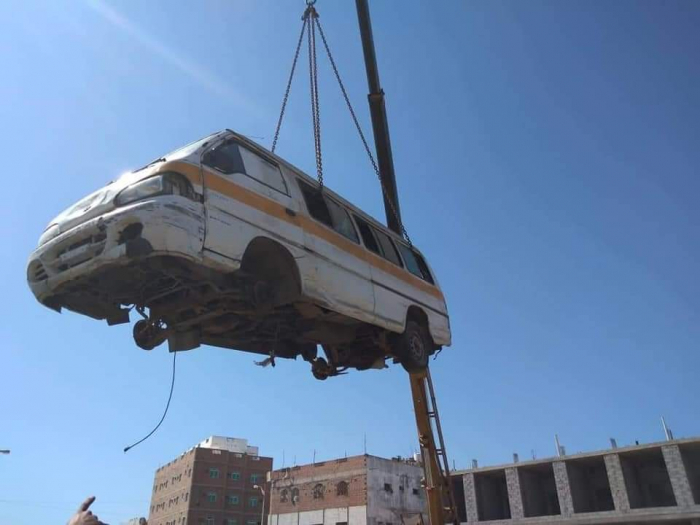 بالصور.. تواصل رفع السيارات المتهالكة من شوارع عدن