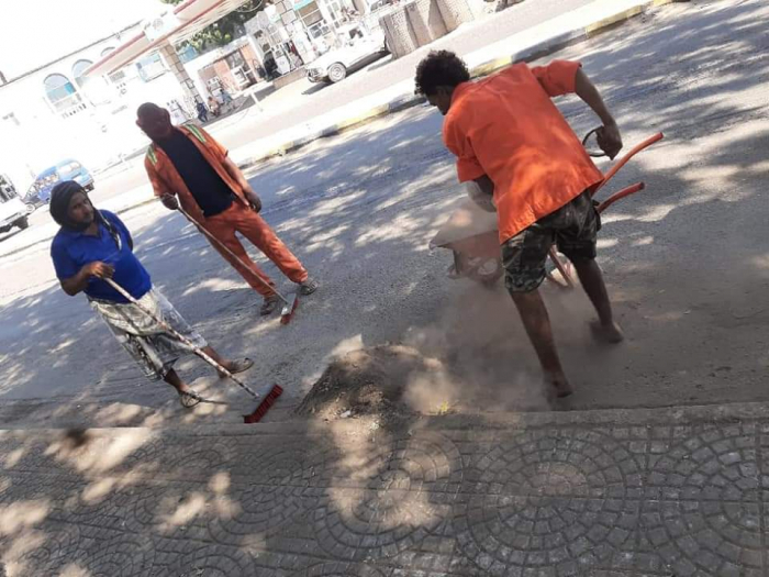 وشهدت مديريتا صيرة والتواهي أعمال كنس بالاستعانة بالشيوال والقلابات الكبيرة، لرفع القمامة والمخلفات من المواقع المستهدفة.