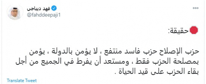 ديباجي: حزب الإصلاح فاسد.. ومستعد للتفريط في الجميع من أجل مصلحته