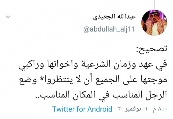 وكتب الجعيدي عبر تغريدة له على "تويتر" رصدها "المشهد العربي": "في عهد وزمان الشرعية وإخوانها وراكبي موجتها على الجميع أن لا ينتظروا وضع الرجل المناسب في المكان المناسب".