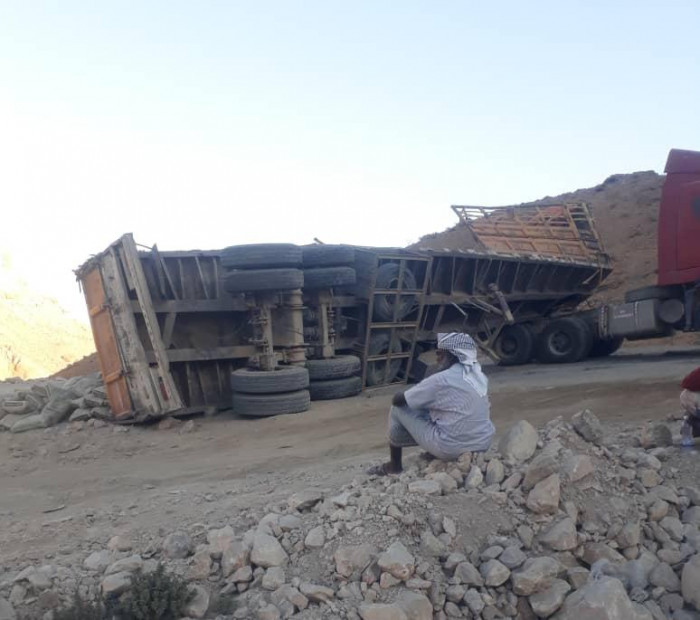 أغلقت قاطرة طريق عبد الله غريب الرابط بين مدن ساحل ووادي حضرموت، مساء أمس الاثنين، بعد انقلاب حمولتها من مئات أكياس الأسمنت.