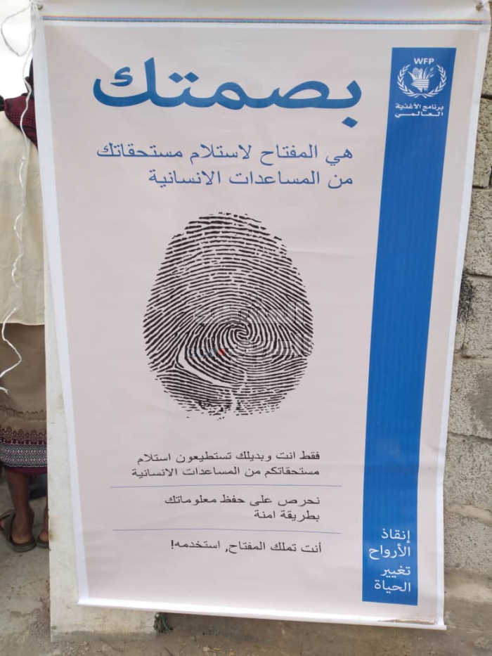 ونسقت الشركة مع منظمة "كير" العالمية؛ لتدشين نظام البصمة لمستفيدي برنامج الغذاء العالمي في مديرية خنفر، والبالغ عددهم حوالي 14015 مستفيدًا.