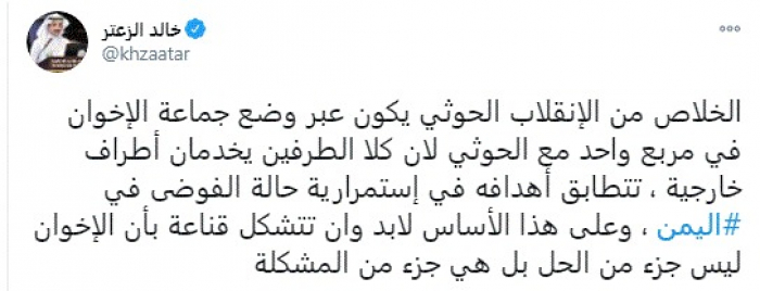 الزعتر: الخلاص من الحوثي لن يتم إلا بوضع الإخوان في مربع واحد معهم