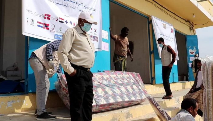 بالصور.. مواد إيواء لـ 150 نازحًا في المكلا