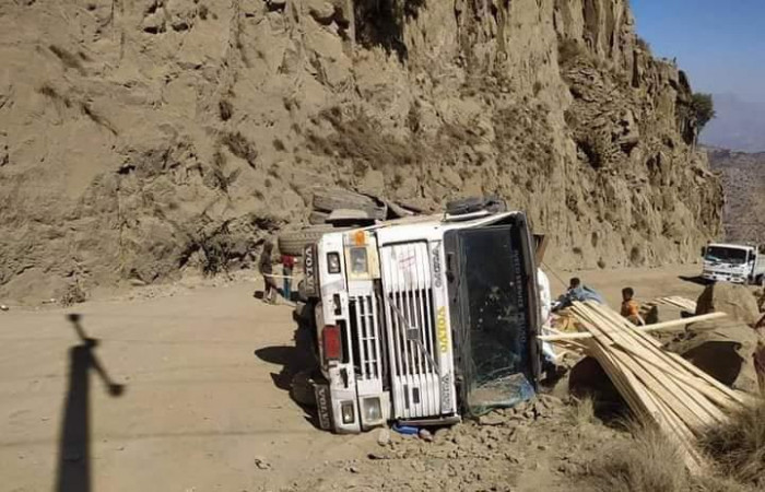 شهد طريق هيجة - العبد الحيوي الرابط بين محافظة تعز والعاصمة عدن، صباح اليوم الجمعة، حادث انقلاب شاحنة نقل ثقيلة.