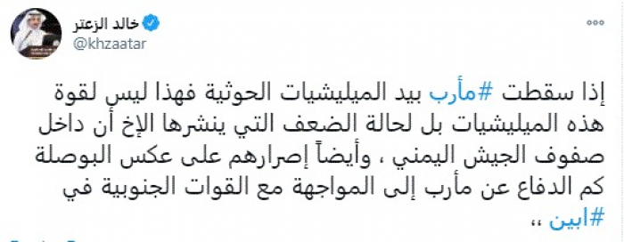 الزعتر يُهاجم الشرعية.. ويؤكد: سقوط مأرب يعكس حالة ضعفها