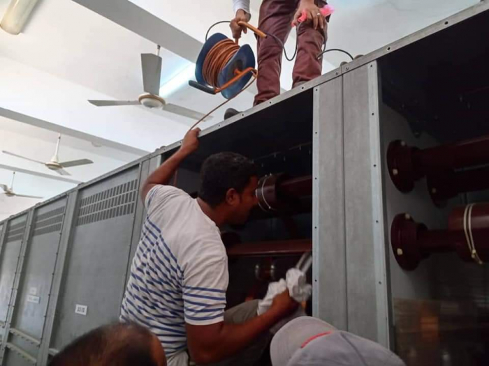 وتضمنت أعمال الصيانة اليوم، تصفية القواطع V.C.B، وتشحيم الملامسات الثابتة والمتحركة، وشد أطراف الكابلات، وتنظيف جميع المكونات من الداخل والخارج.