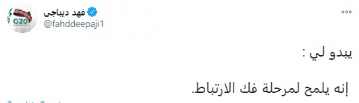وقال في تغريدة عبر "تويتر" رصدها "المشهد العربي": "يبدو لي.. إنه يلمح لمرحلة فك الارتباط".