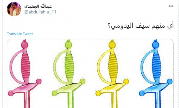 ونشر "الجعيدي" صورة لعددًا من السيوف وكتب "تغريدة" تابعها "المشهد العربي" وقال: "أي منهم سيف اليدومي؟".